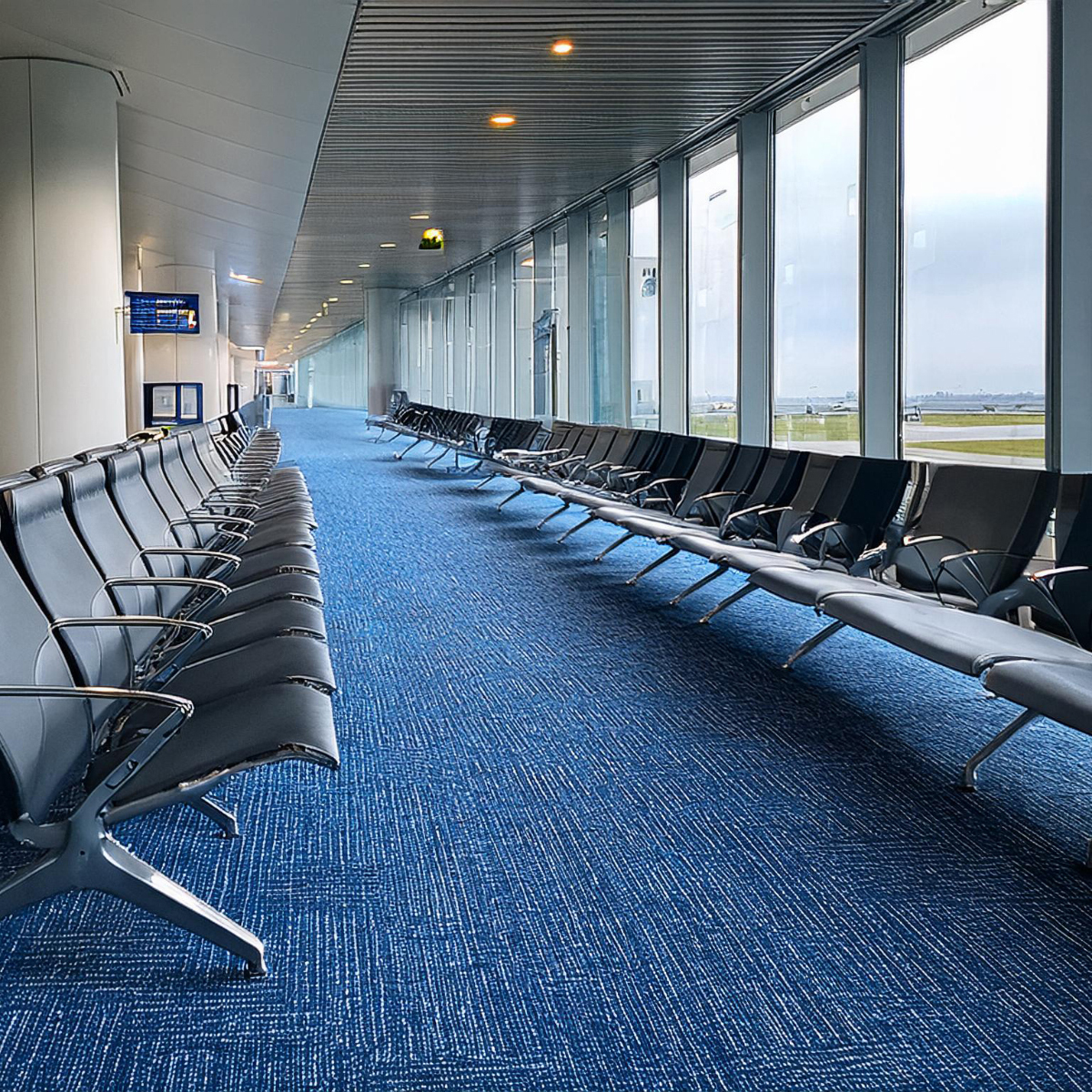 In an airport waiting room, Dark Denim conveys calming efficiency. Its deep tone helps to neutralize stress and anxiety in travelers, providing a sense of calm amid the busy environment.